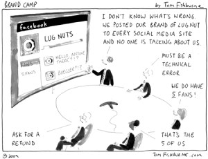 We’re sorry that you’re not John Mayer, Shaq, Lindsay Lohan or a boatload of other famous people who instantly attained millions of followers upon their entry to Twitterville. And it’s really too bad that your company might not be as exciting to Facebook users as McDonald’s—whose actual business page gets trumped by a grassroots-created page with almost 2 million fans! Don’t worry, we still like you.